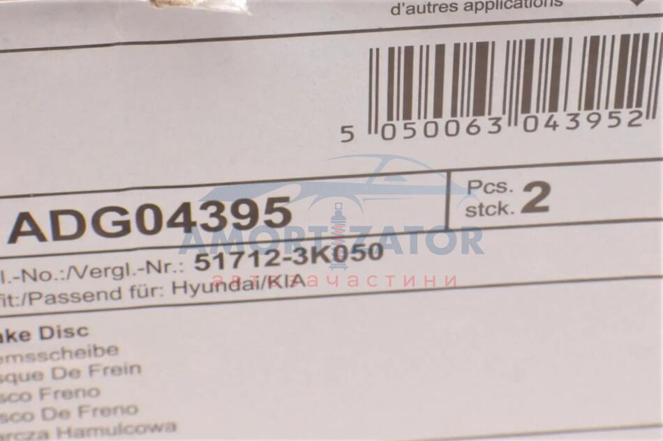 Диск гальмівний BLUE PRINT ADG04395
