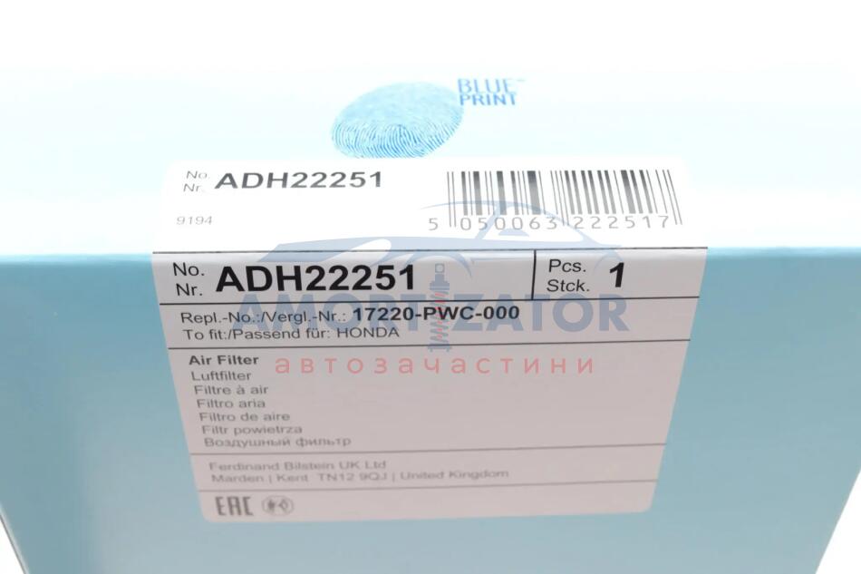 Фільтр повітряний BLUE PRINT ADH22251