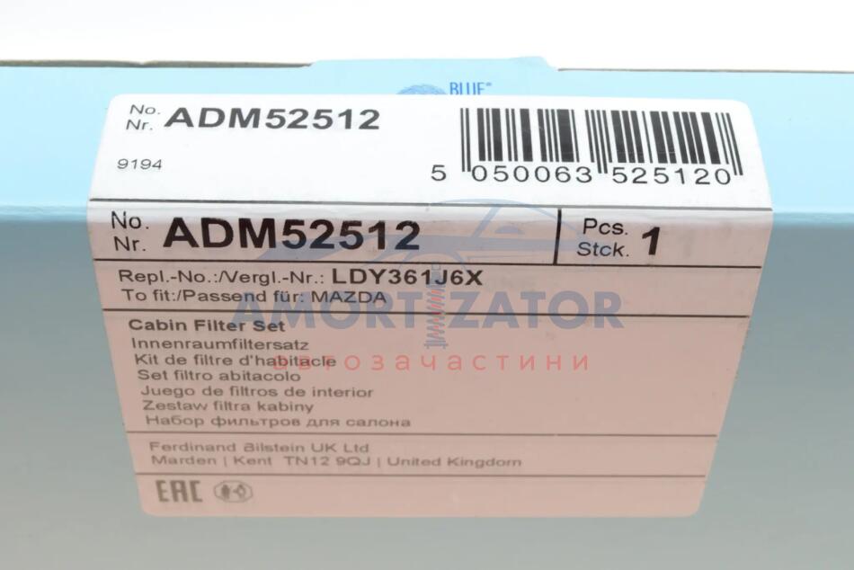 К-т змінних фільтруючих елементів повітряного фільтра салону BLUE PRINT ADM52512