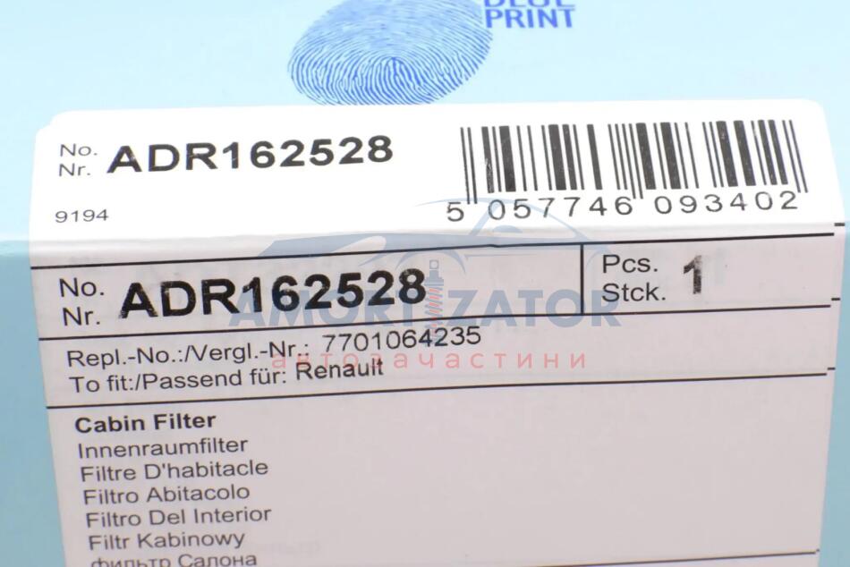 Фільтр салона BLUE PRINT ADR162528