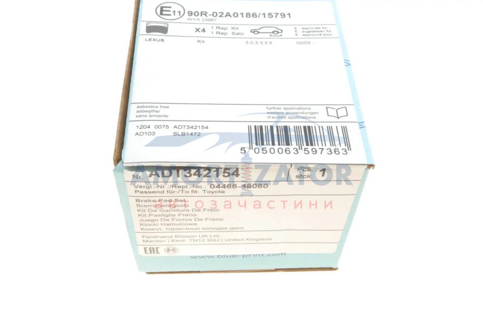 К-т колодок гальмівних BLUE PRINT ADT342154