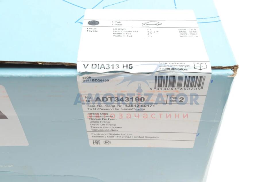 Диск гальмівний(к-т) BLUE PRINT ADT343190
