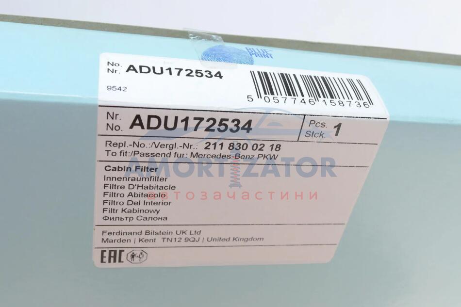 Фільтр салона BLUE PRINT ADU172534