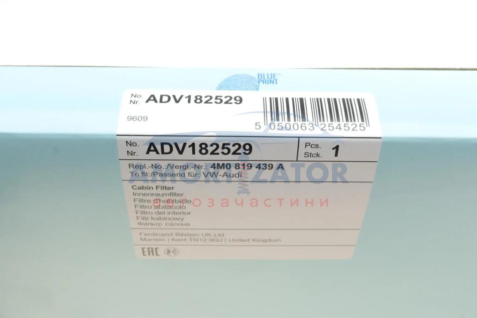 Змінний фільтруючий елемент повітряного фільтра салону BLUE PRINT ADV182529