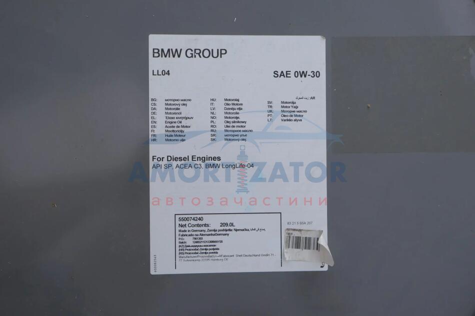 Олива моторна TwinPower Tubo Longlife-4 SAE 0W30 (209 Liter) BMW 83215B5A207