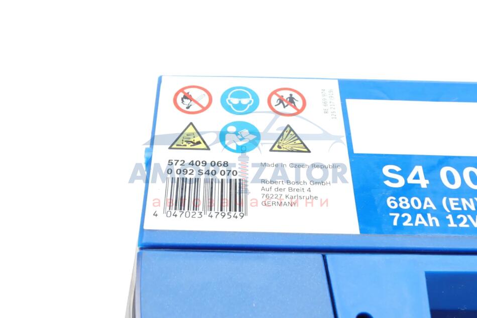 Акумуляторна батарея 12В/72Аг/680А/16,7кг BOSCH 0 092 S40 070