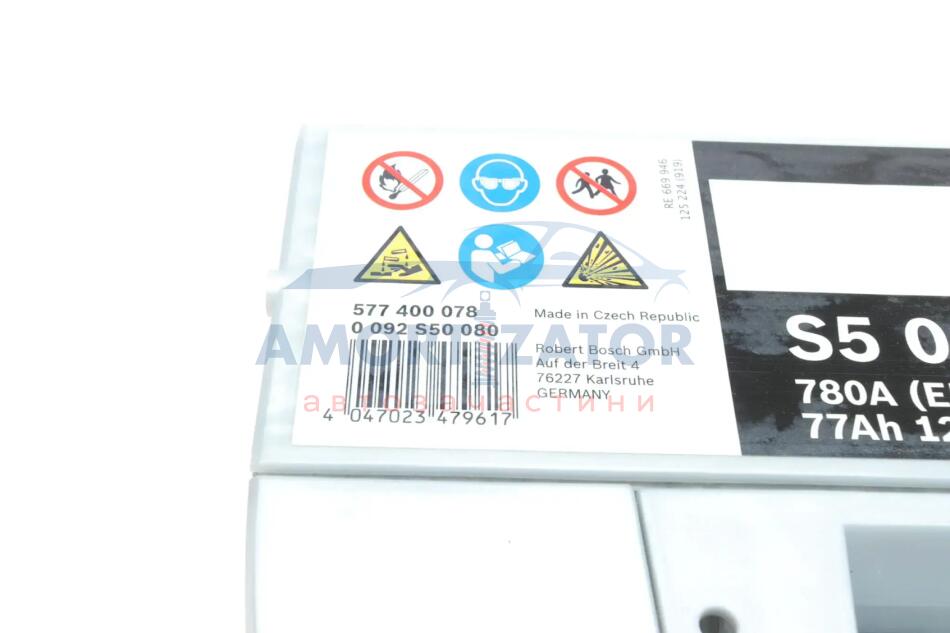 Акумуляторна батарея 12В/77Аг/780А/17,54кг BOSCH 0 092 S50 080