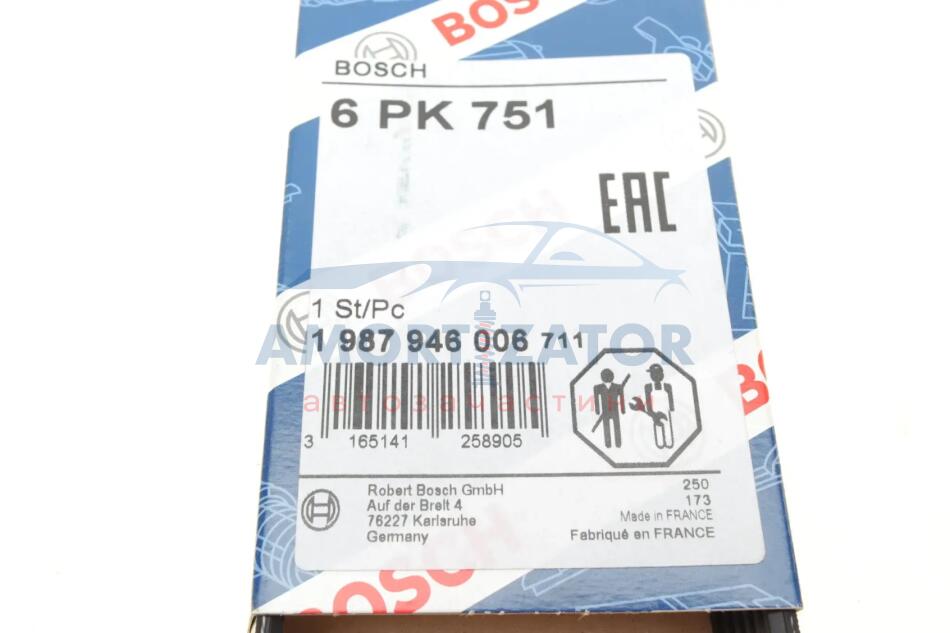 РЕМІНЬ П-КЛИНОВИЙ 6PK751 BOSCH 1 987 946 006