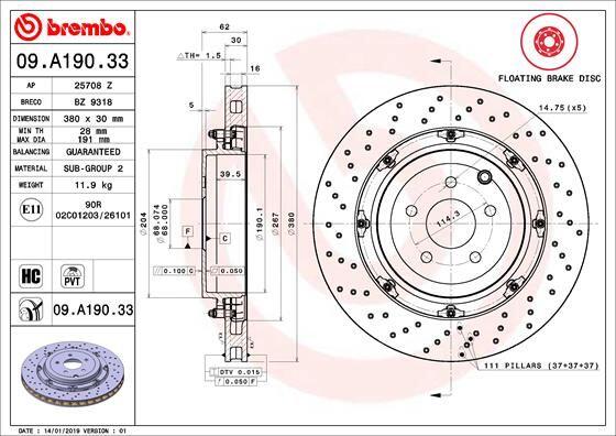 - BREMBO 09A19033 подходит к маркам/моделям авто: