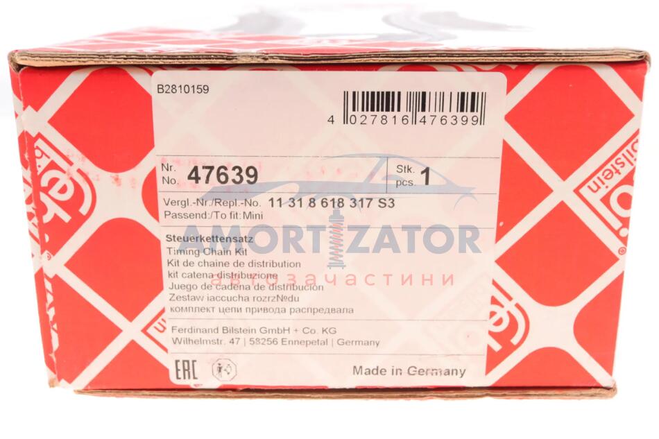 Комплект ГРМ, ланцюг+елементи FEBI BILSTEIN 47639