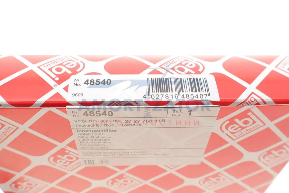 Змінний фільтруючий елемент повітряного фільтра салону FEBI BILSTEIN 48540
