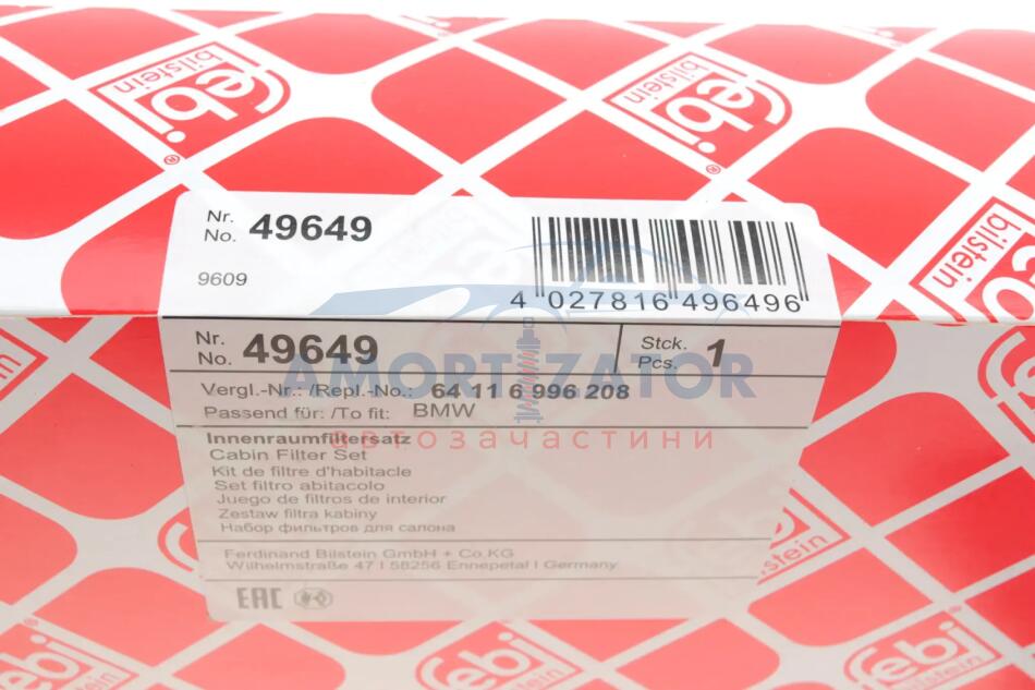 К-т змінних фільтруючих елементів повітряного фільтра салону FEBI BILSTEIN 49649