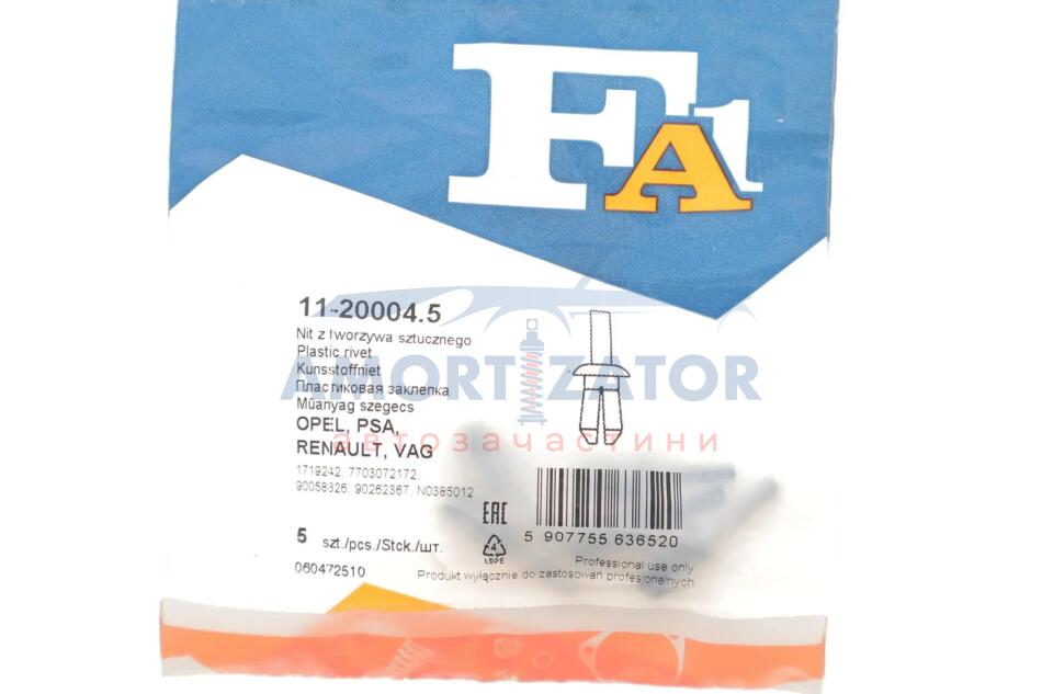 Кліпса кріплення (затискач) Fischer Automotive One (FA1) 11-20004.5