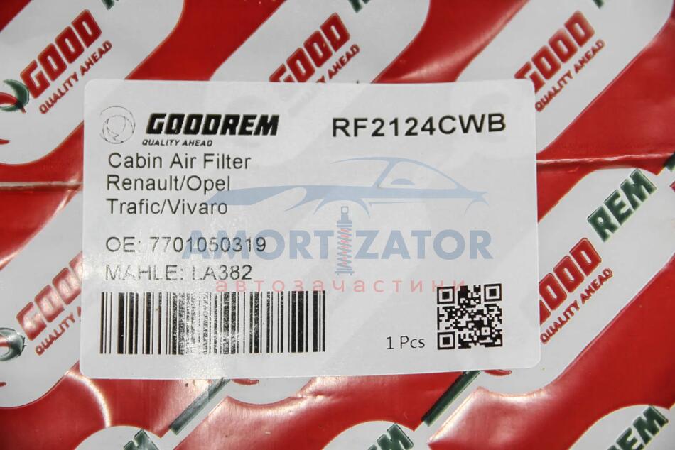 Фільтр салону Trafic/Vivaro 01- (вугільний) GOODREM RF2124CWB