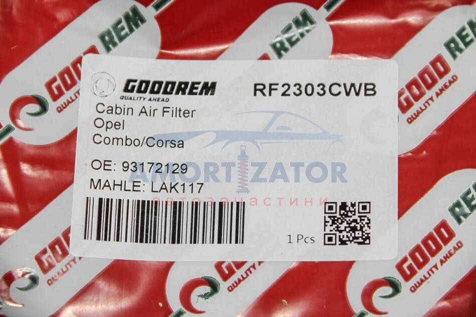 Фільтр салону Combo/Corsa 01-/Vectra 03- (вугільний) GOODREM RF2303CWB