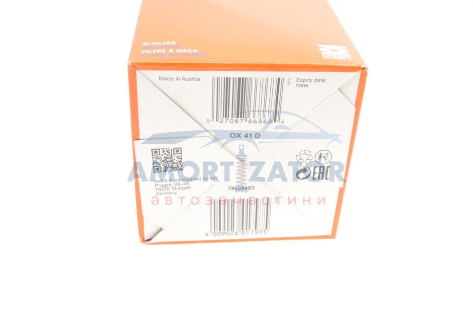 Фільтр масляний KNECHT MAHLE / KNECHT OX 41D