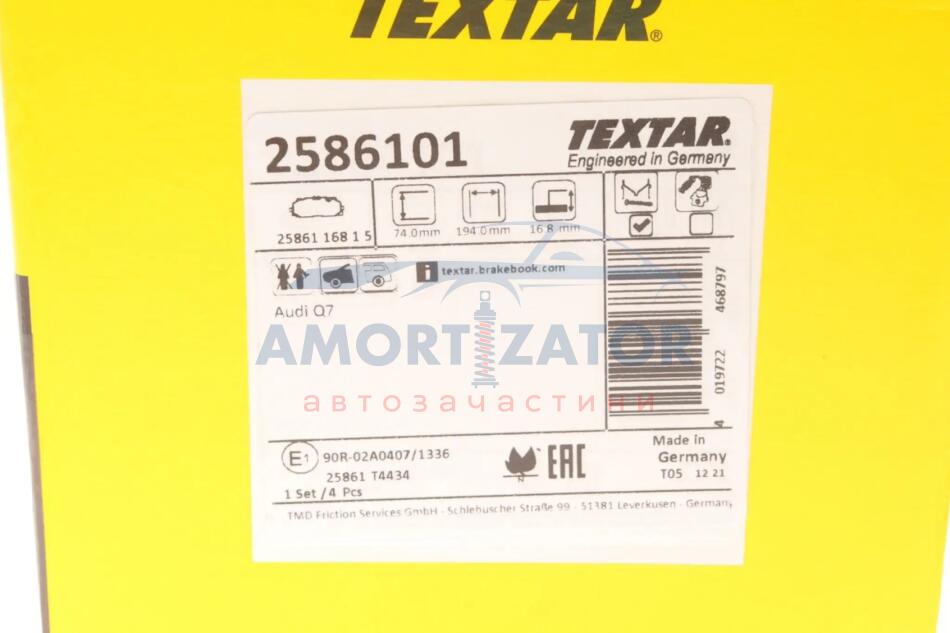 - TEXTAR 2586101 подходит к маркам/моделям авто: