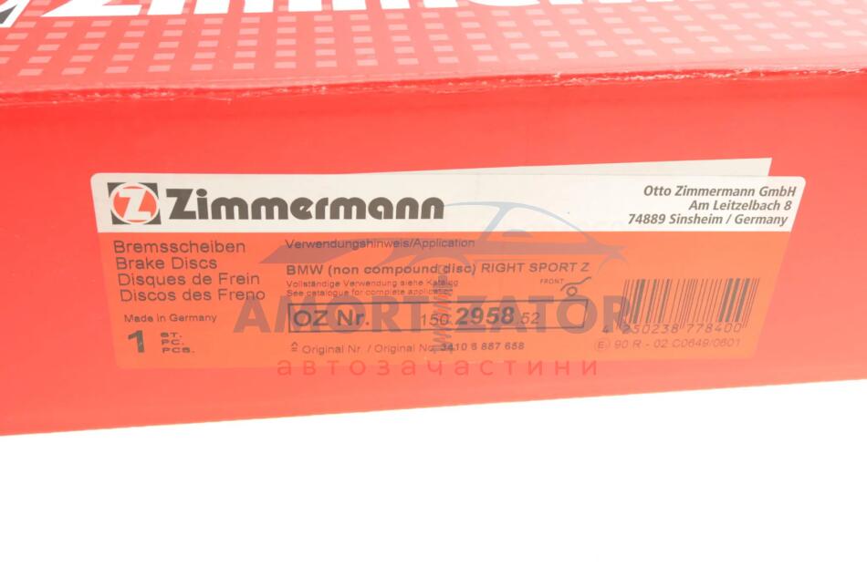 - ZIMMERMANN 150.2958.52 подходит к маркам/моделям авто: