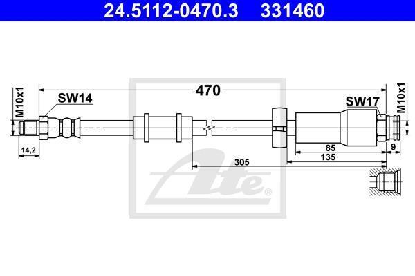 Гальмівний шланг гнучкий передн лів/прав (довжина 470мм, M10x1/M10x1) CITROEN JUMPER I, JUMPER II FIAT DUCATO PEUGEOT BOXER 1.9D-2.8D 02.94- ATE 24511204703