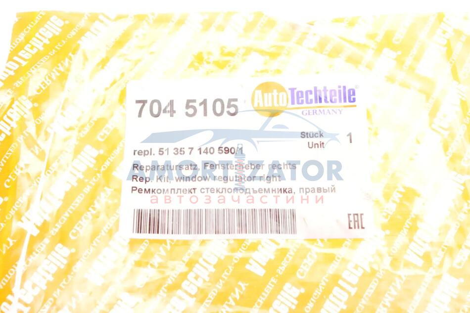 Ремкомплект склопідіймача, правий AUTOTECHTEILE 704 5105