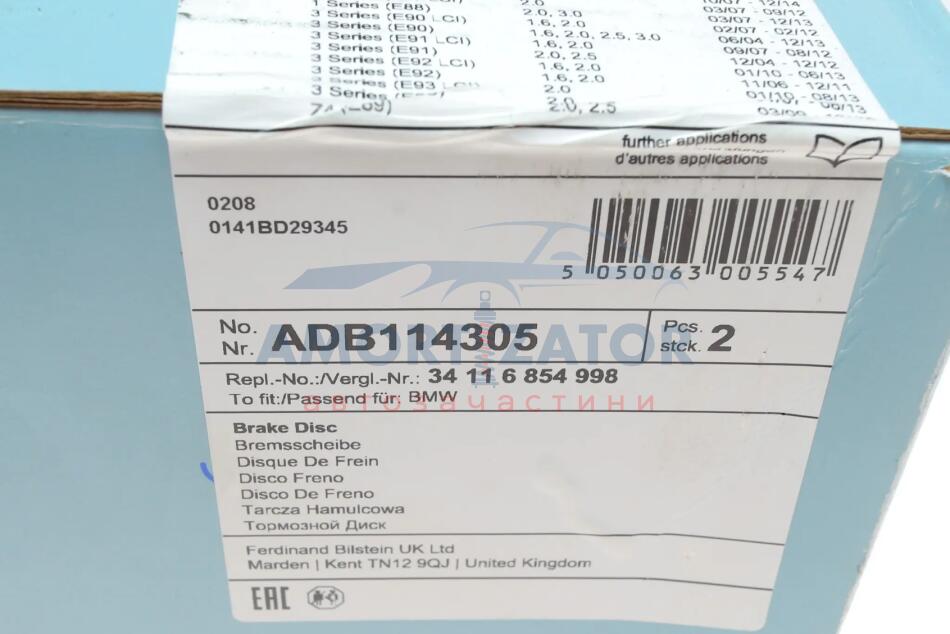 Диск гальмівний(к-т) BLUE PRINT ADB114305