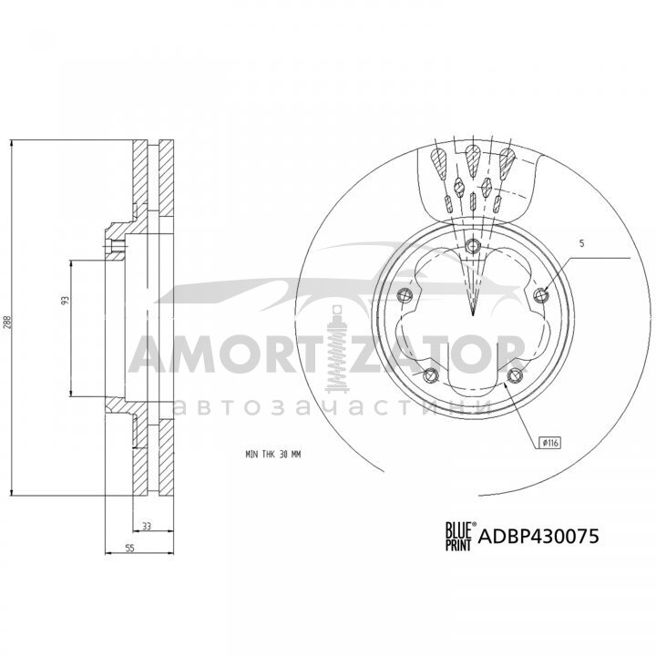 FORD Гальмівний диск TOURNEO CUSTOM V362 Автобус (F3) 2.0 EcoBlue 15-, TRANSIT CUSTOM V362 Автобус (F3) 2.0 EcoBlue 15- BLUE PRINT ADBP430075