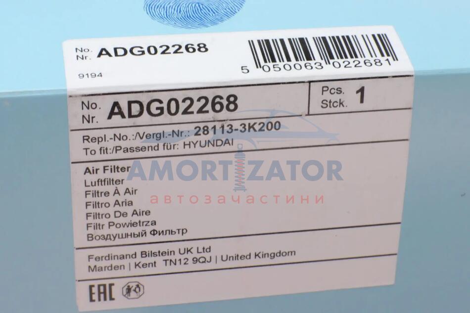 Фільтр забору повітря BLUE PRINT ADG02268