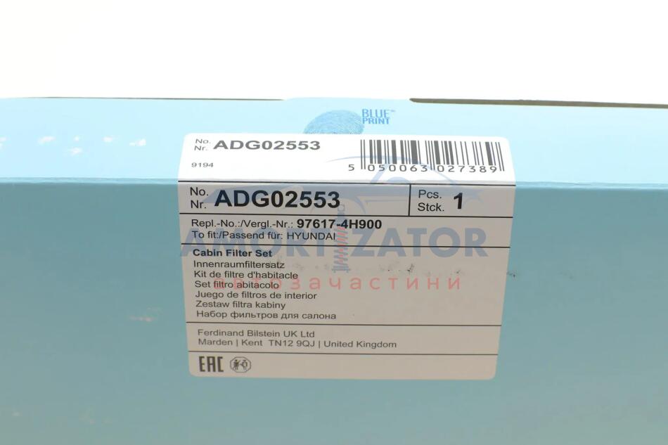 К-т фільтрів салону BLUE PRINT ADG02553