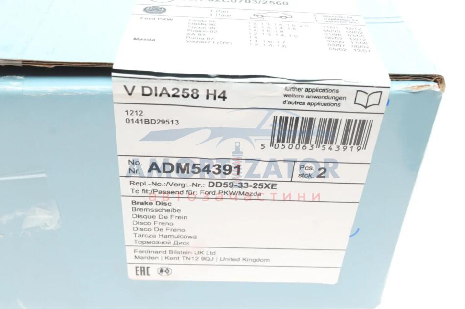 Диск гальмівний BLUE PRINT ADM54391