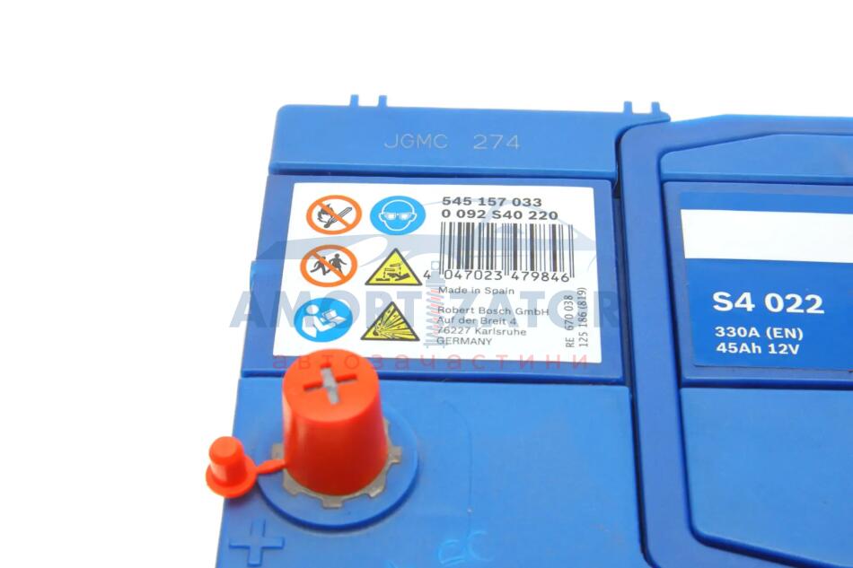 Акумулятор 12В/45Аг/330А/11,43кг BOSCH 0 092 S40 220