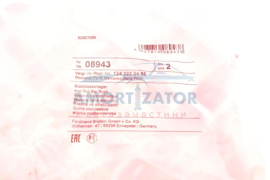 - FEBI BILSTEIN 08943 підходить до марок/моделей авто: