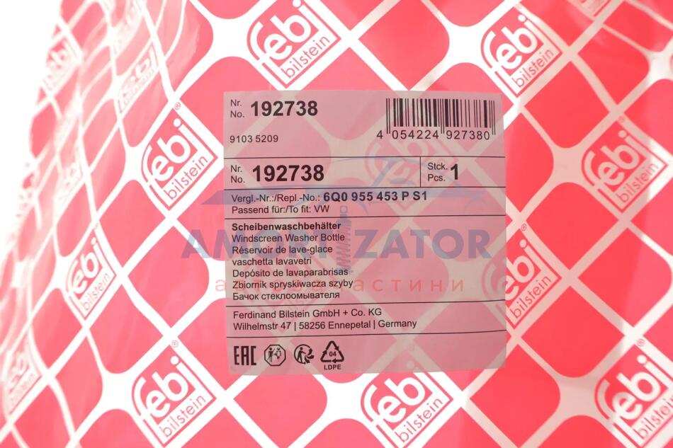 Бак води для миття, система склоочисників FEBI BILSTEIN 192738