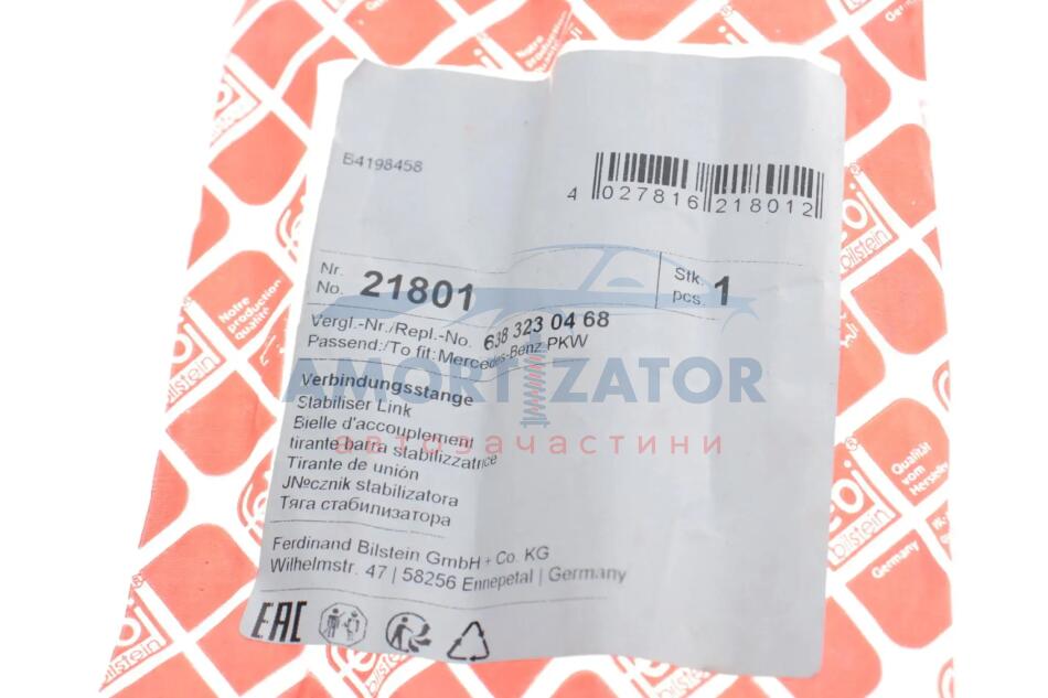 Кронштейн(тяга) стабілізатора FEBI BILSTEIN 21801