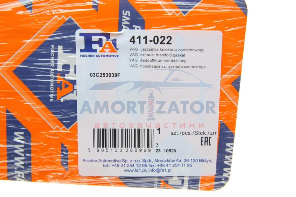 Прокладка колектора випускного FA1 Fischer Automotive One (FA1) 411-022