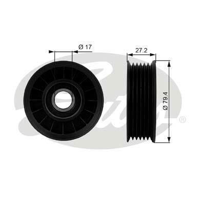Ролик поліклинового ременя (пластик) BUICK PARK AVENUE, REGAL, RIVIERA CADILLAC CTS CHEVROLET BERETTA, CAMARO, CAVALIER, CELEBRITY, CORSICA, EQUINOX, IMPALA, MALIBU, TRAILBLAZER 1.8-5.7 09.86- GATES T38009