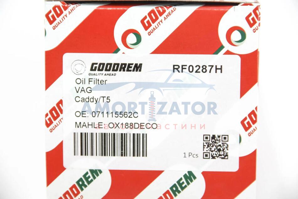 Фільтр масляний 1.9TDI/2.0SDI T5 03-/Caddy/Golf 04-/Passat/Jetta 05- (прямий) GOODREM RF0287H