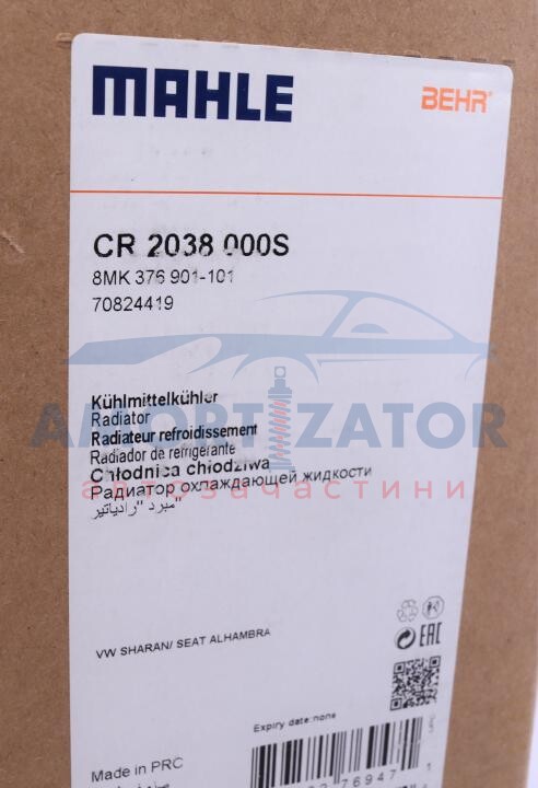 Радіатор охолодження MAHLE MAHLE / KNECHT CR 2038 000S