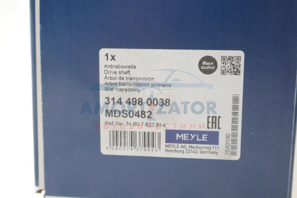 Вал приводний BMW X5 (E70) (02/06-07/13), X5 (F15) (08/13-07/18), X6 (E71), X6 (F16) MEYLE 314 498 0038