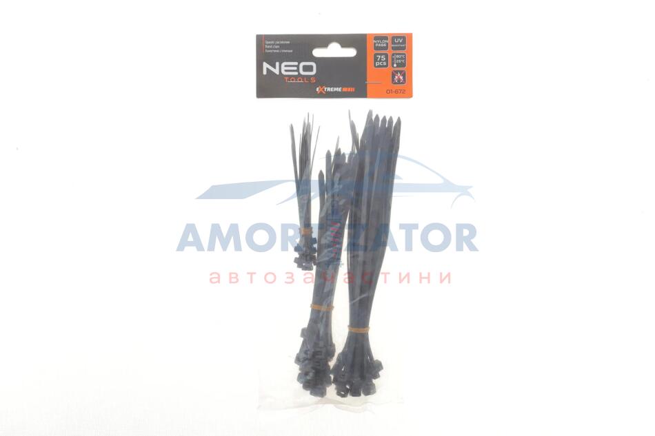 Стяжки кабельні EXTREME чорні набір 2,5х100мм, 4,4х200мм, 4,8х200мм, 25 шт. NEO TOOLS 01-672
