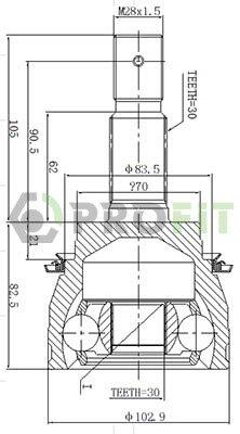 Внутрішнє зубчасте з'єднання з боку колеса: 30
