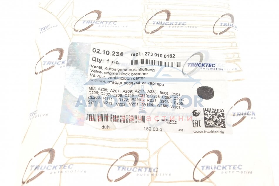 Клапан вентиляції картера AUTOMOTIVE TRUCKTEC 02.10.234